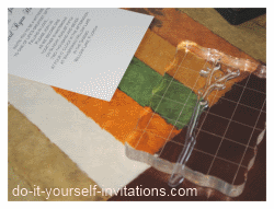 So to move on, after cutting all of my paper folders, I created the wording for the invitations to attach to the inside of the handmade paper. I used some desktop publishing software to lay out the text to print two to a page. You can easily do this yourself using one of our free printable invitations templates. The template is an interactive PDF file which most anyone can use.