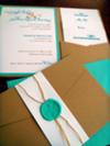 I designed, printed, cut, and assembled each invite by hand. Supplies For 100 pocketfold invitationsPockets & Paper From CardsandPockets.com This company is so wonderful! We ordered multiple samples to make sure we found the perfect color and texture. 8 1/2" x 11 bulk Snow White Cardstock: $4.95 per 50 pack = $24.75 5 x 7" Signature Pocket Fold - Harvest: .69 each = $69.00 Invitation Mat - Lagoon: .18 each = $18.00 Mailing Envelope - Lagoon: .15 each = $15.00 Snow White Belly Bands: $8.95 per 50 pack = $17.90 Total Paper Cost - $144.65 Wax Seal Supplies from www.letterseals.com The people from this company were great! They were so, so helpful in advising me which wax to choose and understanding of my indecisiveness! 1” starfish seal - $10.00 Aladine Glue Gun wax in Turquoise - $4.00 each $38.00 – used a 15% off coupon = 32.30 Michael's Crafts Tombo Permanent adhesive Raffia $16.00 Other Supplies Glue gun Printer & ink My invitations came out to be $2.23 each! MEASUREMENTS Invite 4 1/2”x6” = 2 to a sheet of cardstock Directions 3 1/2” x 6” = 3 to a sheet Reception 3 1/2” x 5 3/4” = 3 to a sheet RSVP 3 1/2” x 5” = 4 to a sheet (postcard) Accommodations 3 1/2” x 4 1/4” = 4 to a sheet DIRECTIONS I created and formatted the design for each invitation and inserts on Microsoft Word. The fonts used were Albemarle Swash and Aubrey, downloaded free from Dafont.com. We printed everything ourselves at home. We took everything to FedEx to have the paper cut with their laser cutter ($1.25/cut x 24 cuts). Once everything is cut, you can assemble the invitations. Apply a strip of adhesive on all four sides of the mat and place on the center of the pocketfold. Repeat this step on the invitation and place on top of the mat. Place one of each insert into the pocket in descending order. Once finished, center the invite on the belly band. Secure the band on the back of the invite with some glue. Wrap the band with a piece of raffia and hold secure. Squeeze a small amount of wax over the raffia and press down the seal. Let it sit for a minute or two. I recommend practicing on scrap paper before you start sealing the invitations.