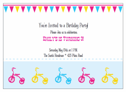 Printable Tricycle Birthday InvitationsThese tricycle birthday invitations are perfect for any children's birthday party with guests of the younger crowd. If they ride tricycles themselves and are still into things like Sesame street and Elmo, they are bound to love these invitations! I love the modern twist to a timeless children's toys. These invites give more of a contemporary feel with a childish and whimsical edge!Our templates now come as a kit complte with a 5 by 7 invitation, an envelope liner sheet, cupcake toppers, and a DIY pinwheel.
